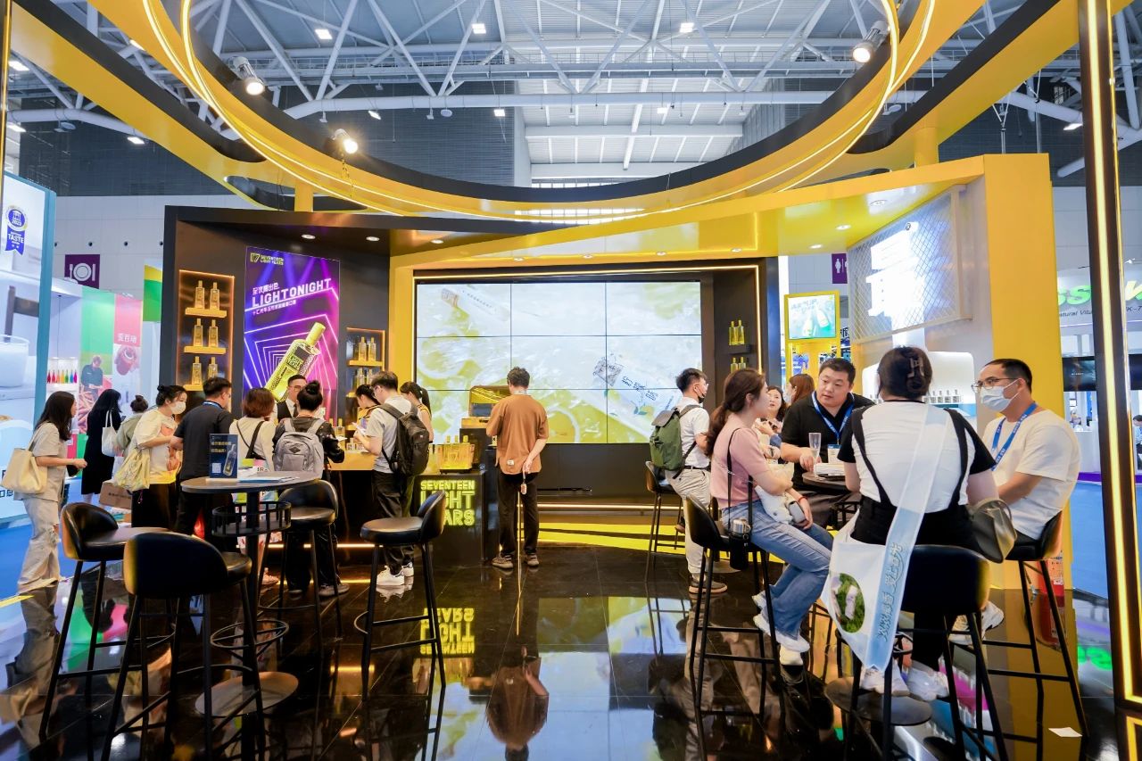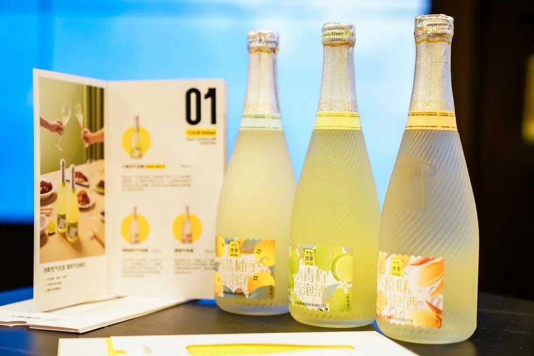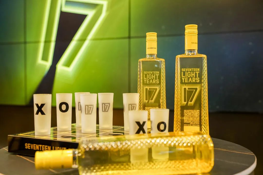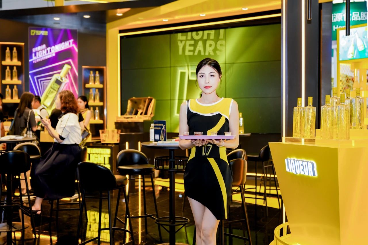 展厅里新品利口酒系列、气泡酒系列以及旗下新品牌“最®酒”悉数陈列,电子大屏幕上不间断播放着产品相关视频,全方位展示十七光年和最®酒的品牌形象;现场还通过多元化的沉浸互动,为消费者奉上了“可颜可甜”的舌尖盛宴。