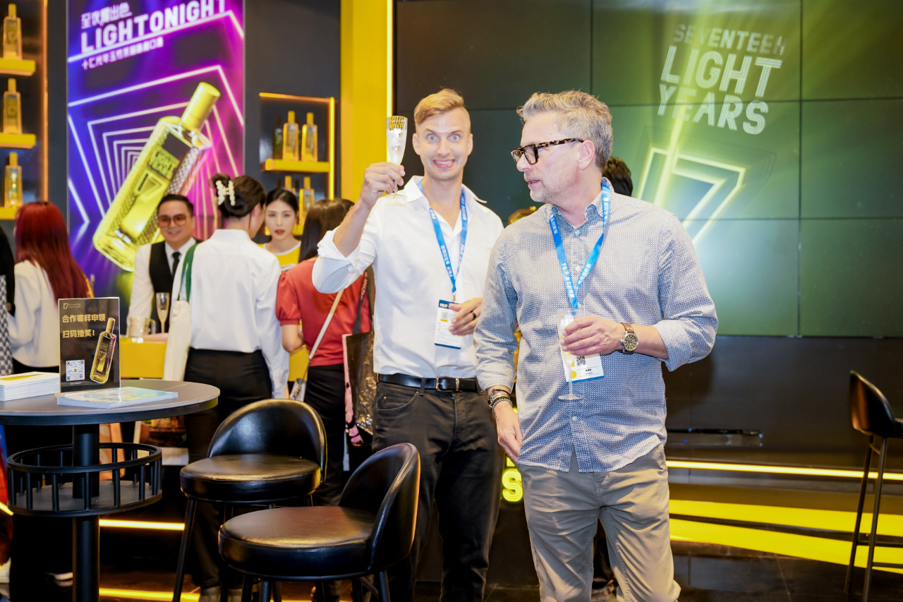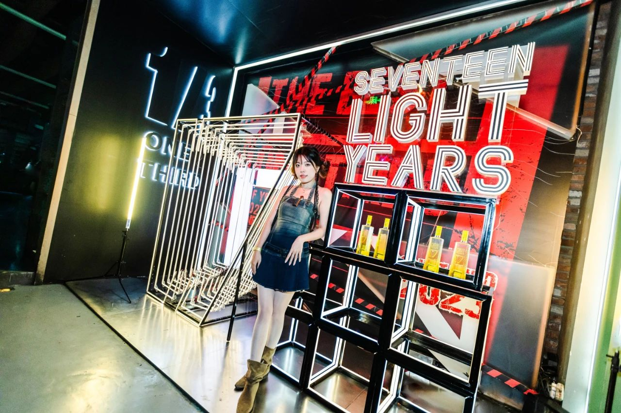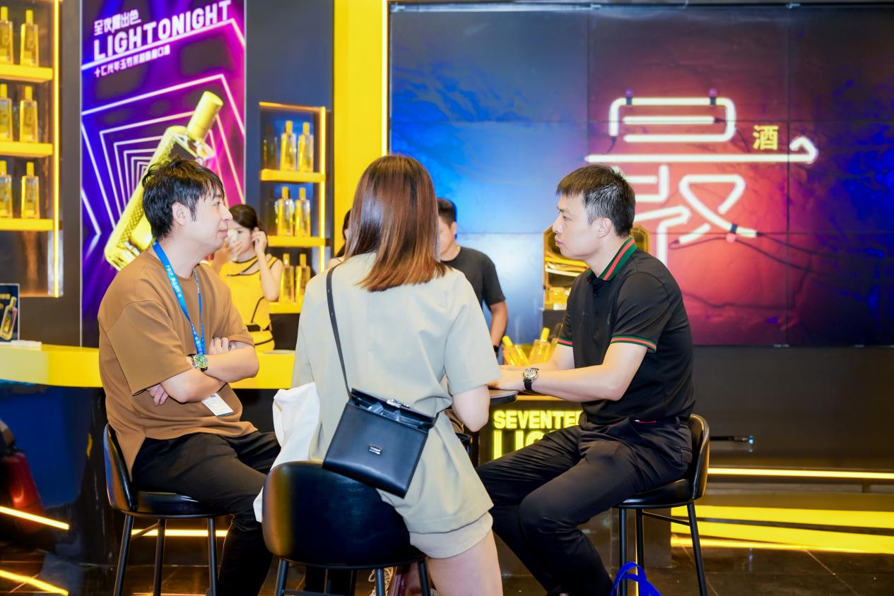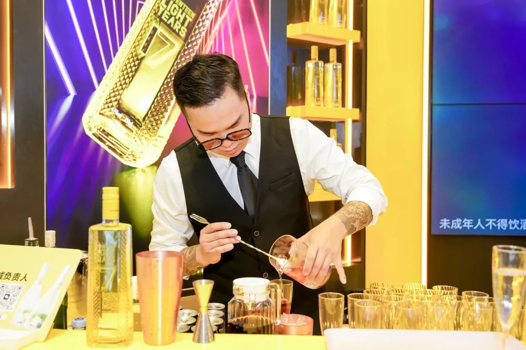 展厅里新品利口酒系列、气泡酒系列以及旗下新品牌“最®酒”悉数陈列,电子大屏幕上不间断播放着产品相关视频,全方位展示十七光年和最®酒的品牌形象;现场还通过多元化的沉浸互动,为消费者奉上了“可颜可甜”的舌尖盛宴。