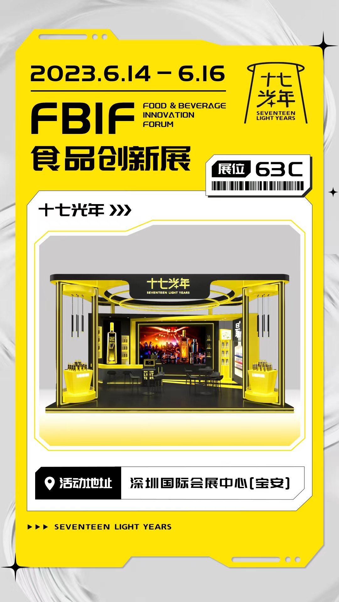 据悉,本届展览面积超62000平方米,容纳900+展商,7000+位行业嘉宾参会,吸引30000+专业观众参会观展。上海贵酒·十七光年展厅位于17号馆C63位置,以利口酒形象为主要设计元素的展厅尽显摩登时尚之感。