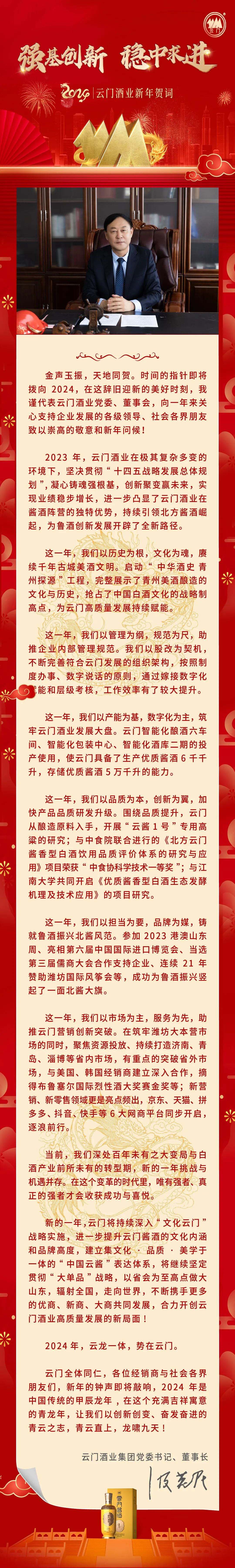 云门酒业集团党委书记、董事长汲英民发表二〇二四年新年贺词