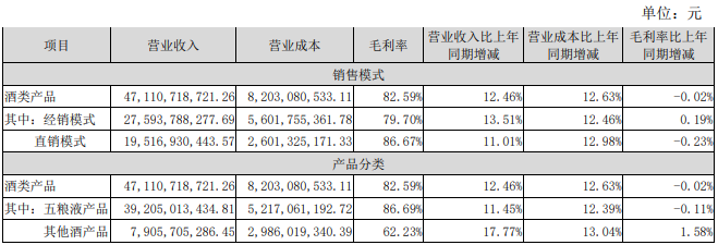 分产品看,五粮液产品上半年实现营收392.05亿元,同比增长11.45%;其他酒产品实现营收79.06亿元,同比增长17.77%。