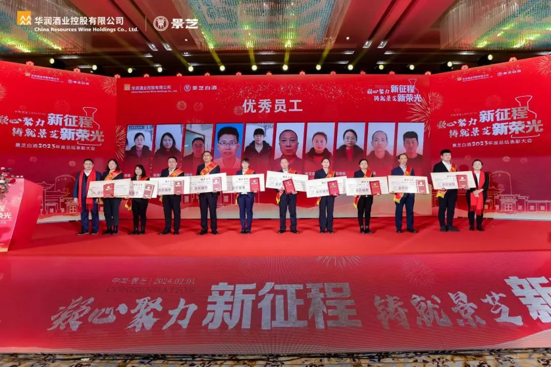 华润酒业人力资源部总监赵新华,华润酒业卓越运营部副总监宋学渊,景芝白酒党委书记、总经理干晓峰及公司管理团队,受表彰的优秀部门、班组和个人,员工代表等300余人亲临现场,公司职工、职工家属以及关心景芝发展的各界朋友通过视频或图文直播形式观看了大会。