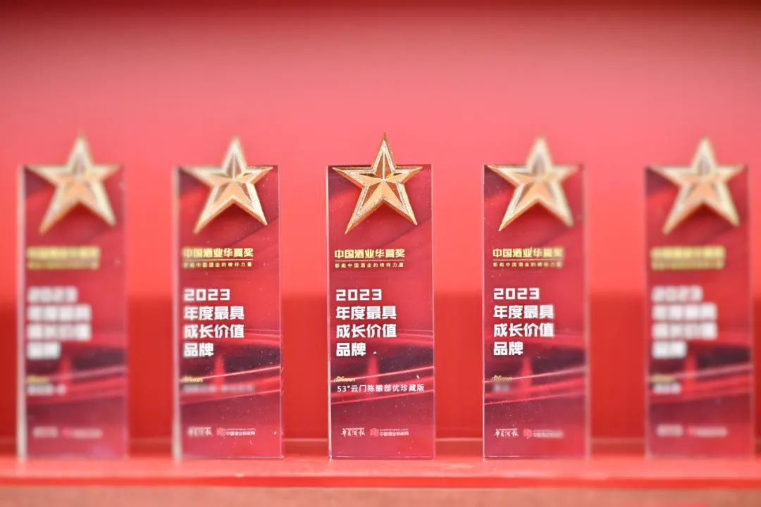 此外,云门酒业的两款明星产品也获得了极高的荣誉。53°云门酱酒·国标G1凭借其独特的口感和卓越的品质,荣获了“2023年度最具标杆价值品牌”的奖项;而53°云门陈酿·部优珍藏版则以其深厚的文化底蕴和卓越的成长潜力,荣获了“2023中国酒业最具成长价值品牌”的殊荣。
