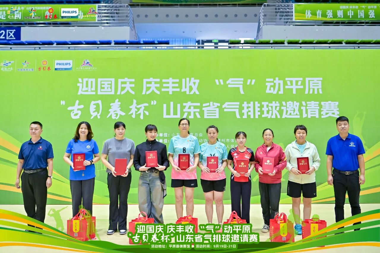 丰收节同期,迎国庆·庆丰收,“古贝春杯”山东省气排球邀请赛在平原县体育馆圆满收官。来自全省各地市的16支代表队在两天里奉献40场精彩比赛,充分展现团队协作与体育精神。颁奖典礼上,古贝春集团营销公司总经理助理潘继魁代表公司为获胜队伍颁发了荣誉证书和奖品,将活动气氛推向高潮。