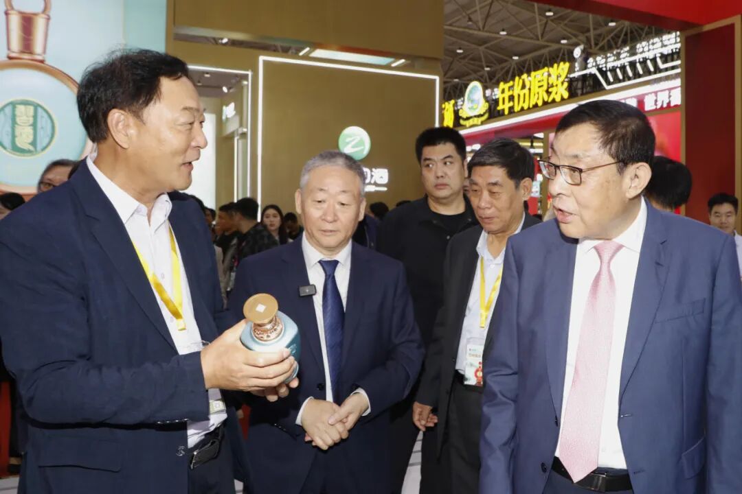巡馆环节,云门酒业集团党委书记、董事长汲英民(左一)向巡馆嘉宾第十二届全国政协副主席马培华(右一),中国酒业协会理事长宋书玉(左二)介绍云门产品及企业发展情况,赢得了各位领导的高度认可。