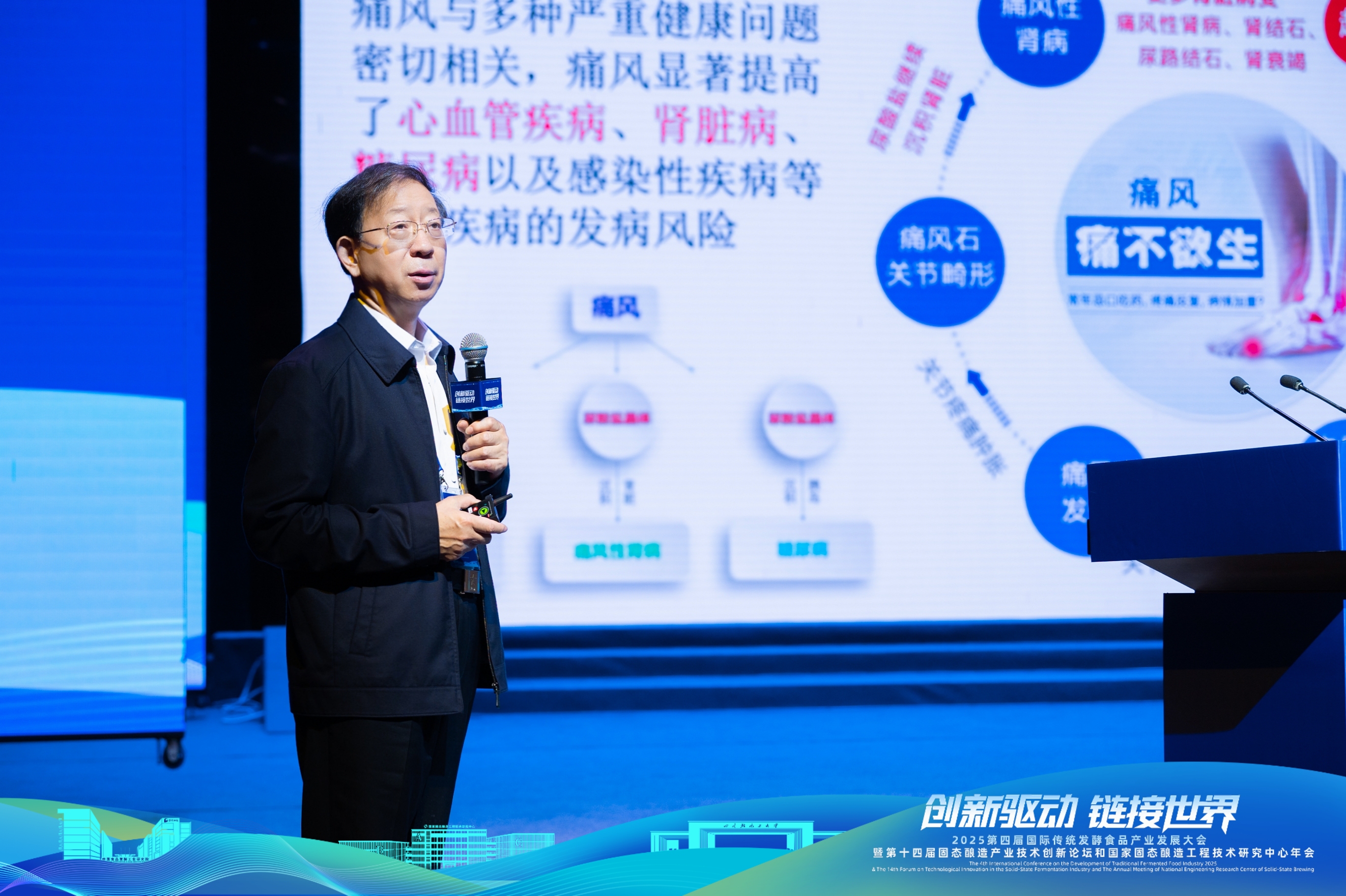 黄和院士作了题为《破除内卷 创新未来》的大会报告。他指出“当前发酵食品产业正面临‘内卷化’挑战,表现为同质化竞争加剧、增长动力受限。要突破这一瓶颈,需要以科技创新驱动价值升维,推动创新范式从“跟跑并跑”转向“战略引领”。