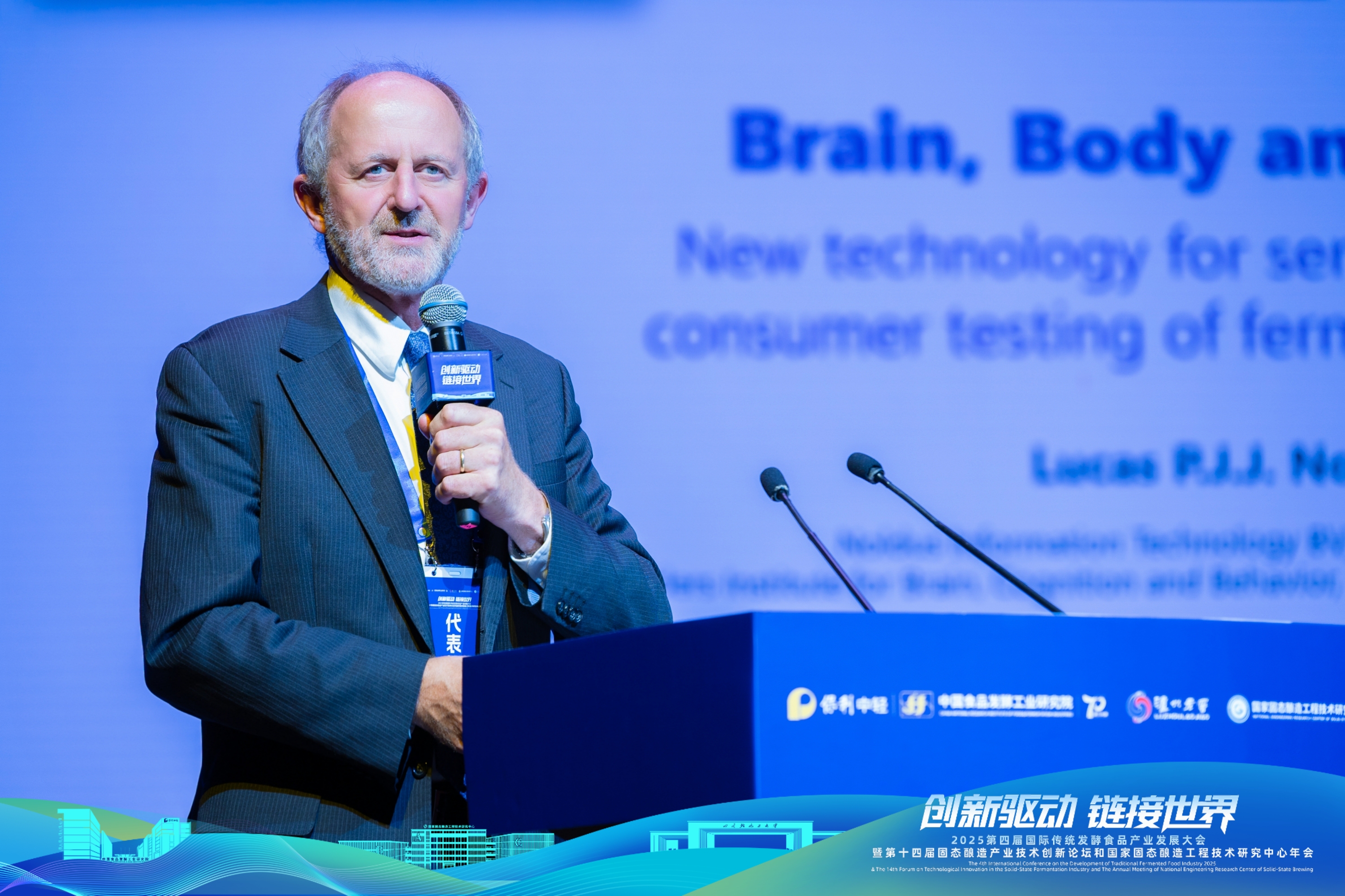 Lucas Noldus院士作了题为《Brain, Body and Behavior: New Technology for Sensory Evaluation and Consumer Testing of Fermented Food Products》(大脑、身体与行为:发酵食品感官评估与消费者测试的新技术)的大会报告,讨论了感官科学、消费者行为学以及产品开发方面的革新与进步,为发酵食品产业带来跨学科启示。