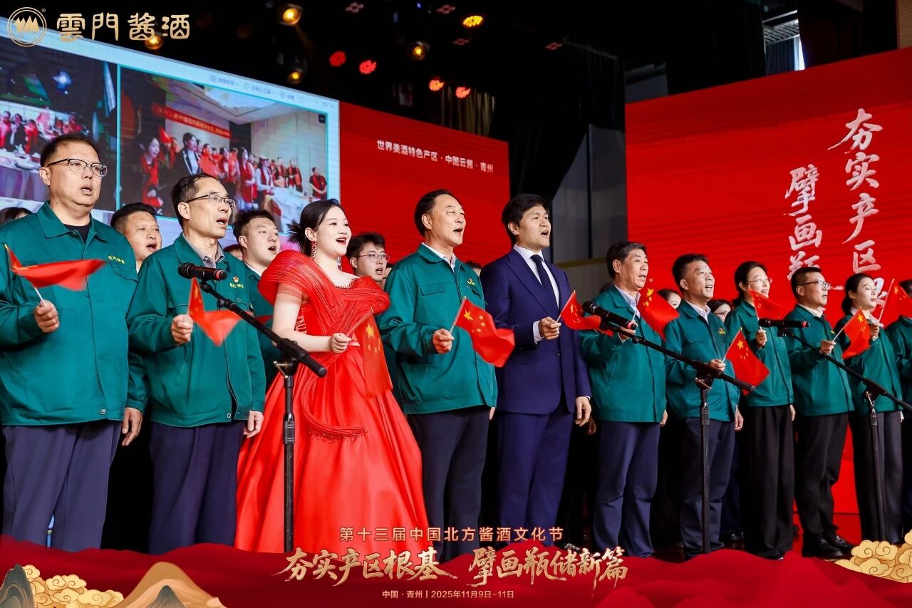 典礼尾声,全场嘉宾齐声高唱《歌唱祖国》,用深情的合唱为庆典仪式画上圆满句号,也为云门酒业建厂77周年献上诚挚祝福。
