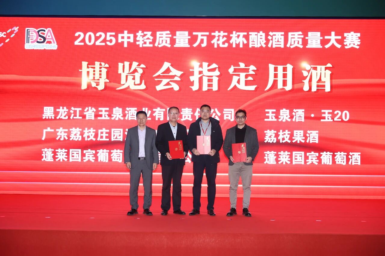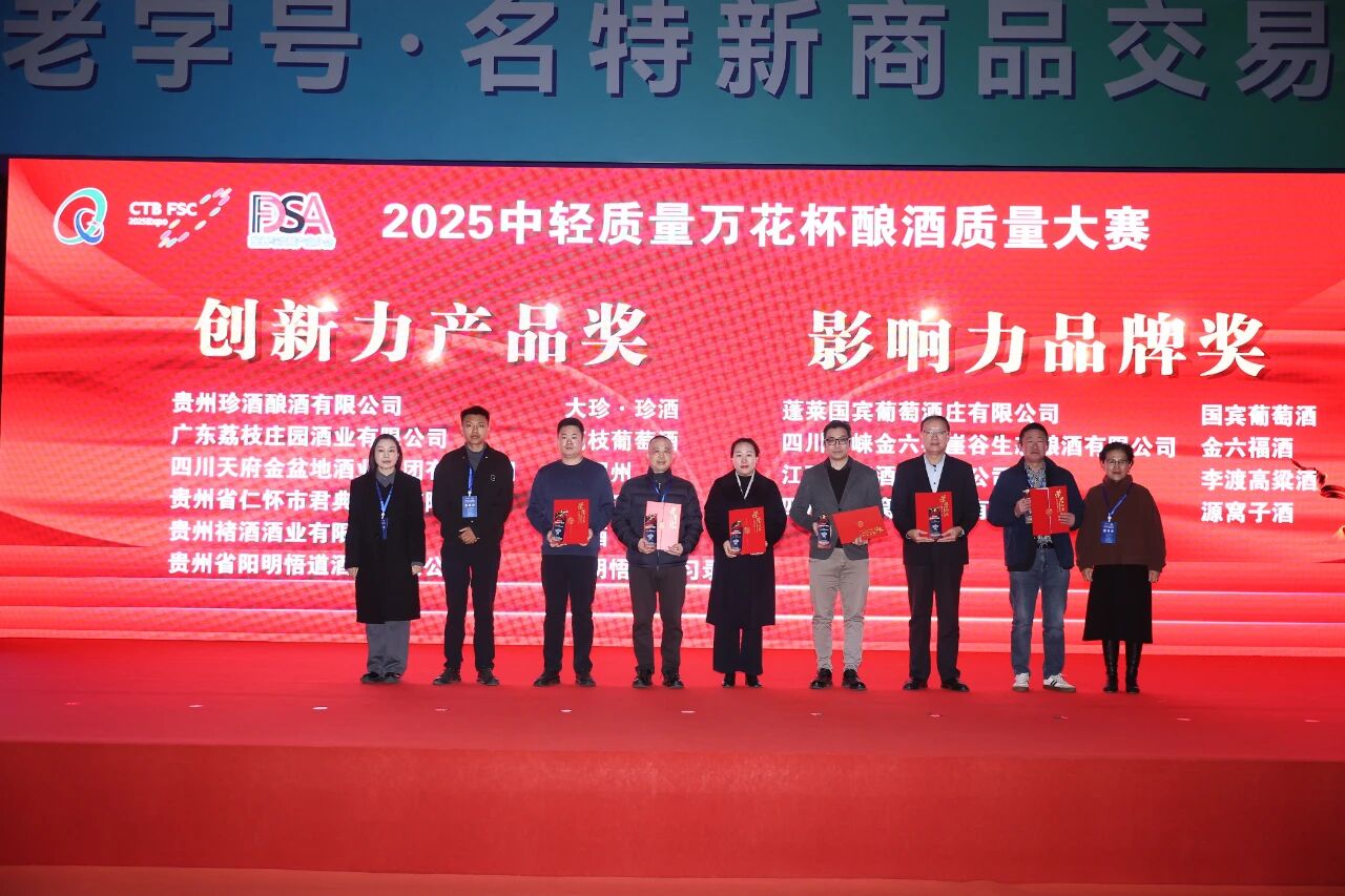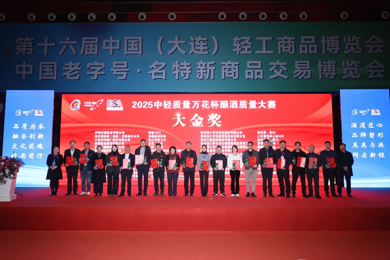 2025年11月20日,由中国轻工业联合会主办,大连市工业和信息化局支持,中国轻工业联合会办公室、大连市轻工业联合会等承办的第十六届中国(大连)轻工商品博览会——中国酿酒产业链协同创新发展论坛暨 2025中轻万花杯酿酒质量大赛颁奖礼隆重举行。在此活动中,盛唐·国宾酒庄旗下的盛唐珍选干白葡萄酒、盛唐珍藏干红葡萄酒、盛唐干红葡萄酒分别荣获“2025中轻万花杯酿酒质量大赛”大金奖、金奖。盛唐·国宾酒庄荣获2025年度影响力品牌奖。
