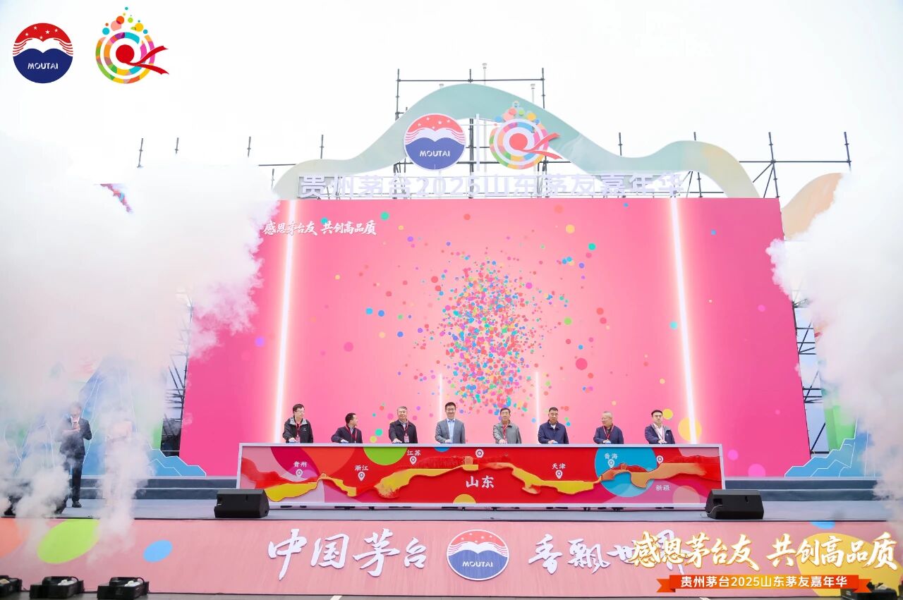 启动仪式现场,领导嘉宾一同按下启动按钮,顷刻间,清泉顺着美酒河脉络缓缓流淌,最终汇聚齐鲁大地,定格“山东站”。伴随着现场热烈的掌声与欢呼声,贵州茅台2025年山东茅友嘉年华正式启动。