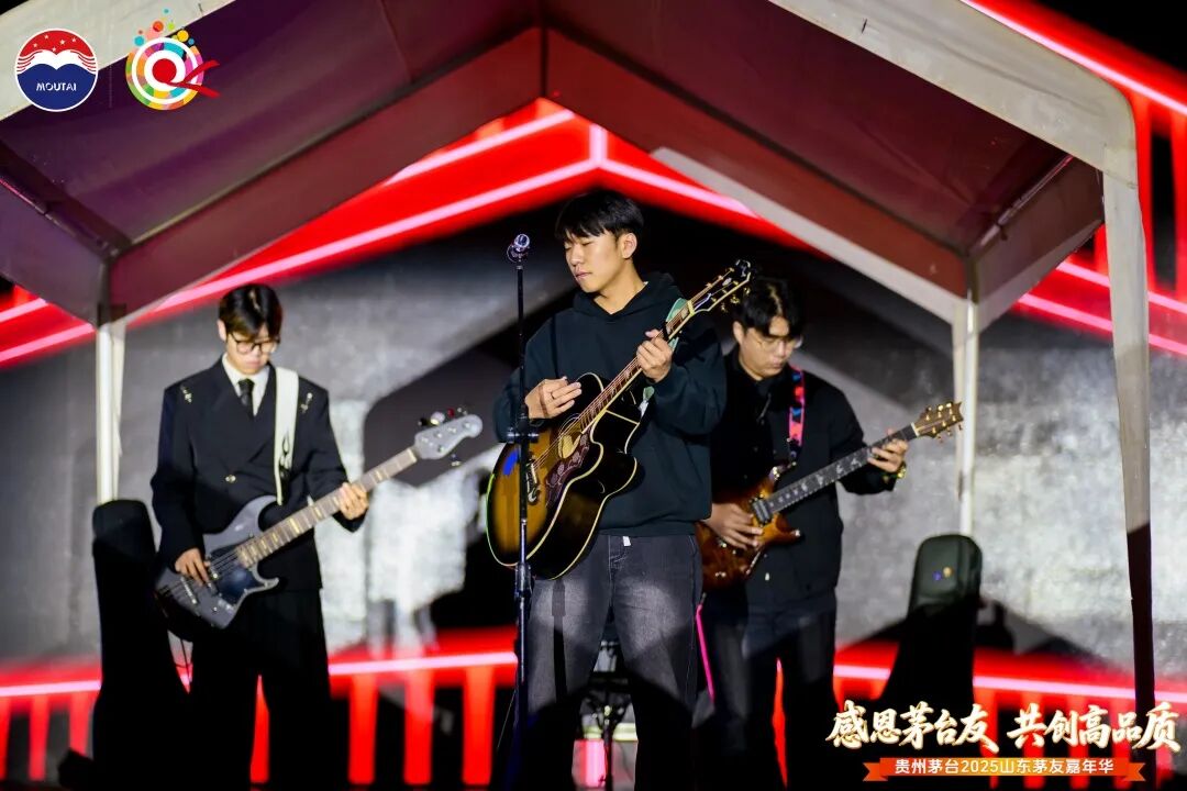 夜幕轻垂,茅友之夜如约启幕。“茅友家宴”与“微醺之夜”两个篇章层层递进,让每一位茅友在举杯共敬间,真情交流,切实感受到这份相聚里的感恩暖意与未来期许。“茅友家宴”篇章,开场舞剧《清照词笺·永遇乐》深度结合明水古城清照文化,借虚实交织的舞台设计,再现宋代文人雅集赏灯的盛景和“染柳烟浓”的诗意;山东茅台传承人携手唱响AI定制歌曲《友朋自远方来》,欢快的旋律、热情的唱腔,既唱出茅台的酒韵芬芳,更寄托着“四海茅友是一家”的美好愿景;特色乐器演奏流淌心弦,一曲曲明月相伴的雅韵悠长,串联起知己相逢的暖意,映照着与茅台共度的岁月静好。“微醺之夜”篇章,经典歌曲唱响岁月情怀、摇滚派对点燃热烈氛围、微醺民谣传递温柔情愫……茅友们在愉悦的视听享受中品鉴茅台之美,感受身心放松的惬意。当旋律渐入尾声,大家纷纷举起荧光棒,在璀璨光影与欢乐氛围中,为这场相聚暂画上圆满句点。