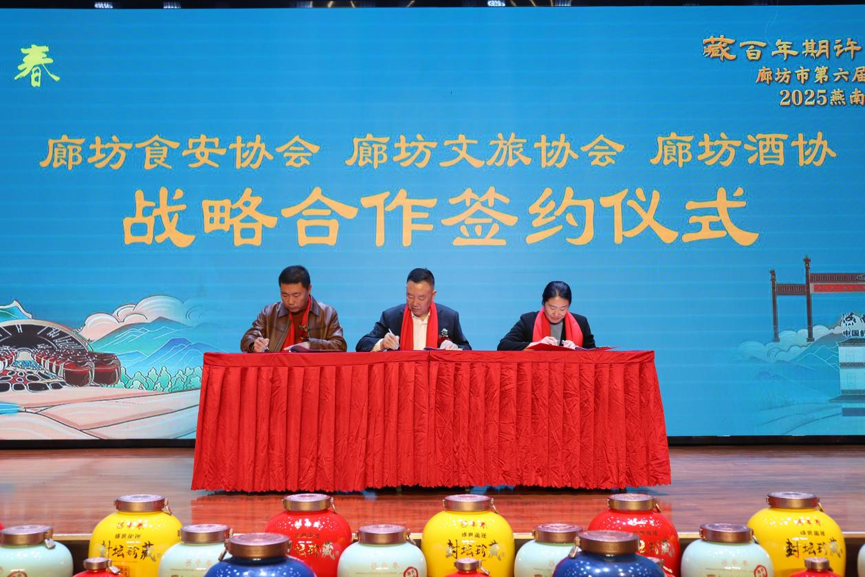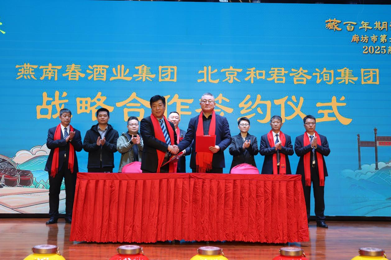 封藏大典同步推动产业协同与资源整合。燕南春集团与北京和君咨询集团、北京佰川研究院达成战略合作,从文化传承、品质管控、品牌升级等维度,构建廊坊白酒产业协同发展新格局。