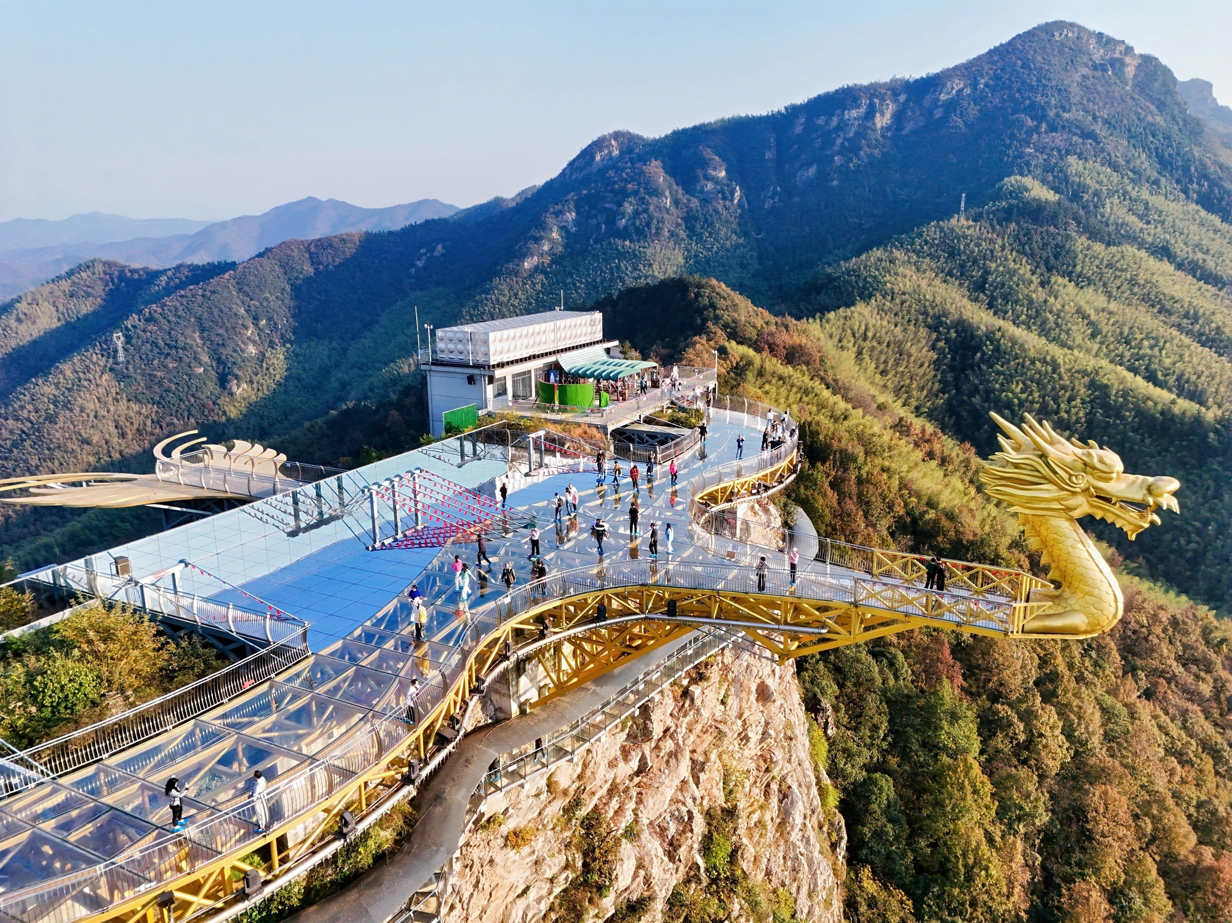 随后的六万情峡考察更是亮点纷呈:代表们乘坐魔毯,单程20分钟左右便直达六万情峡的龙头观景台。站在玻璃平台上,76%的森林覆盖率造就的天然氧吧中,每一口呼吸都满是清新;大型实景演出《大别山传奇》以真实历史为背景改编而成,重现当年的革命岁月,让不少代表热泪盈眶;还有峡谷游船的惬意与竹海滑道滑的刺激,让大家沉浸式体验了景区的多元业态。“秋季的六万情峡层林尽染,演出和风景都特别好,一定要来现场才能感受到这份(演出的)震撼。”来自江西的旅行商代表在考察中由衷赞叹。