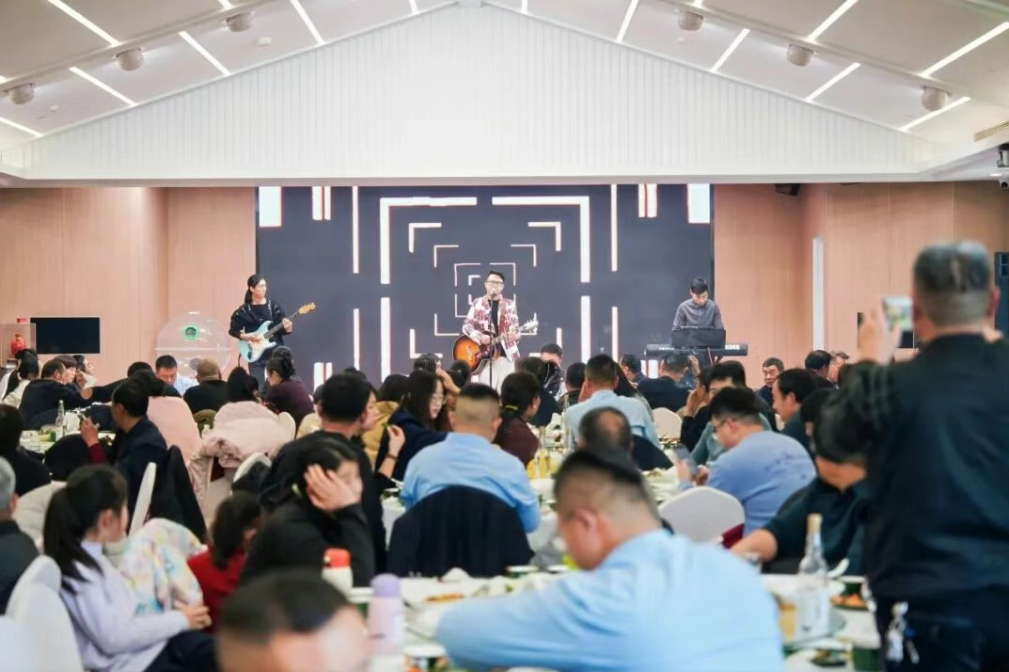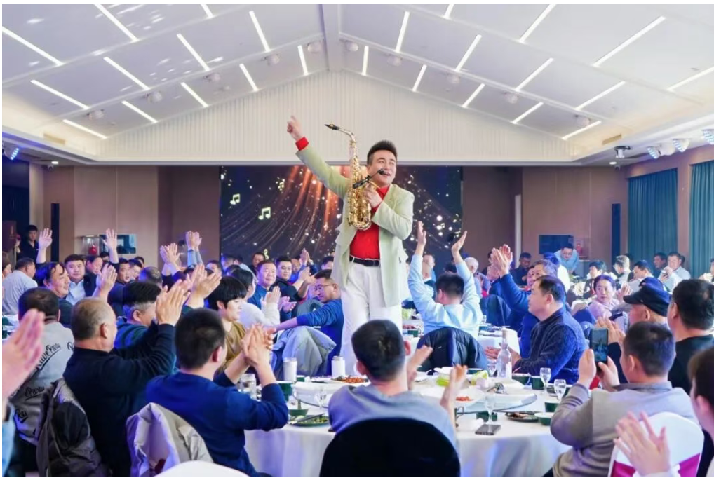 舞台中央,“岁月酿经典,笃行耀荣光”的主题字样厚重而明亮,它不仅是一句口号,更是趵突泉酒业一路走来的生动注脚。现场精彩纷呈的节目演绎尤为引人注目:从深情悠扬的歌曲,到活力四射的乐队弹唱,再到感染全场的萨克斯独奏,每一环节都精心设计,展现了趵突泉酒业的用心与热情。穿插其间的抽奖环节,则将阵阵惊喜与欢笑推向高潮,一份份精心准备的礼品,蕴含的是趵突泉酒业对合作伙伴的浓厚情谊。