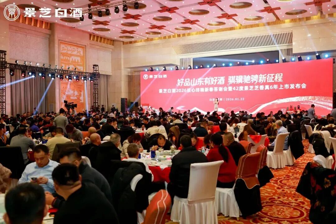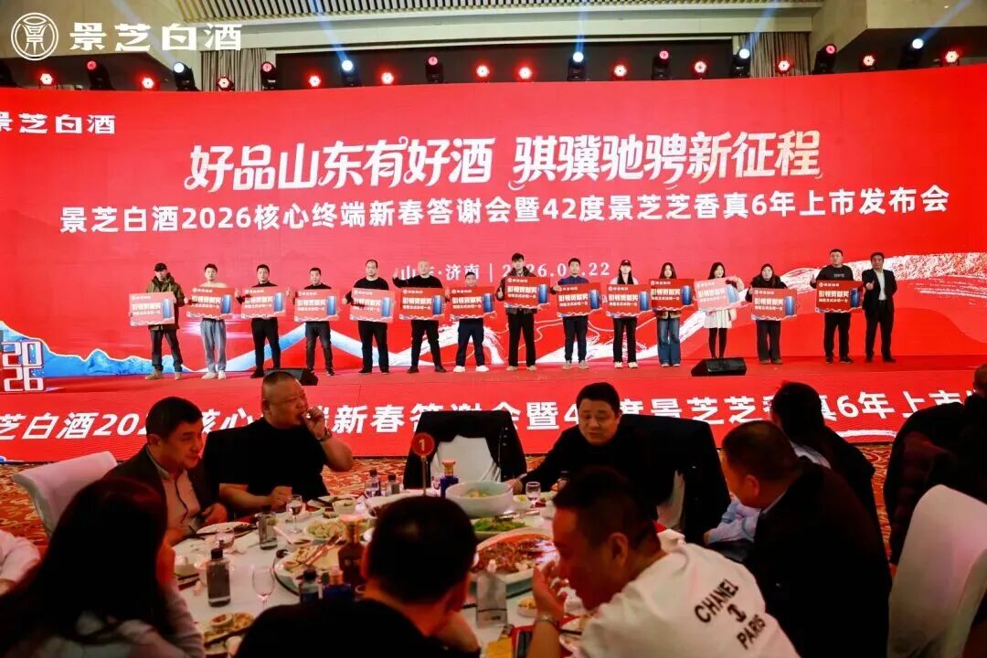 1月22日,好品山东有好酒,骐骥驰骋新征程——景芝白酒2026核心终端新春答谢会暨42度景芝芝香真6年上市发布会在济南山东大厦成功召开,济南区域经销商合作伙伴、核心终端客户等500余人到场参会,厂商携手共谋新一年高质量发展。