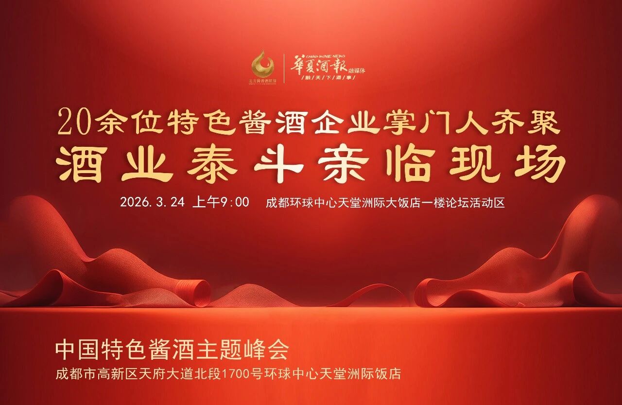 3月24日上午9:00,由北方酱香酒联盟、华夏酒报社主办,山东云门酒业股份有限公司协办的“2026中国特色酱酒主题峰会”,将在成都环球中心天堂洲际大饭店论坛活动区隆重举行。这一次,我们将目光投向酱酒的“特色力量”,聚焦新周期下的价值重构与差异化破局。