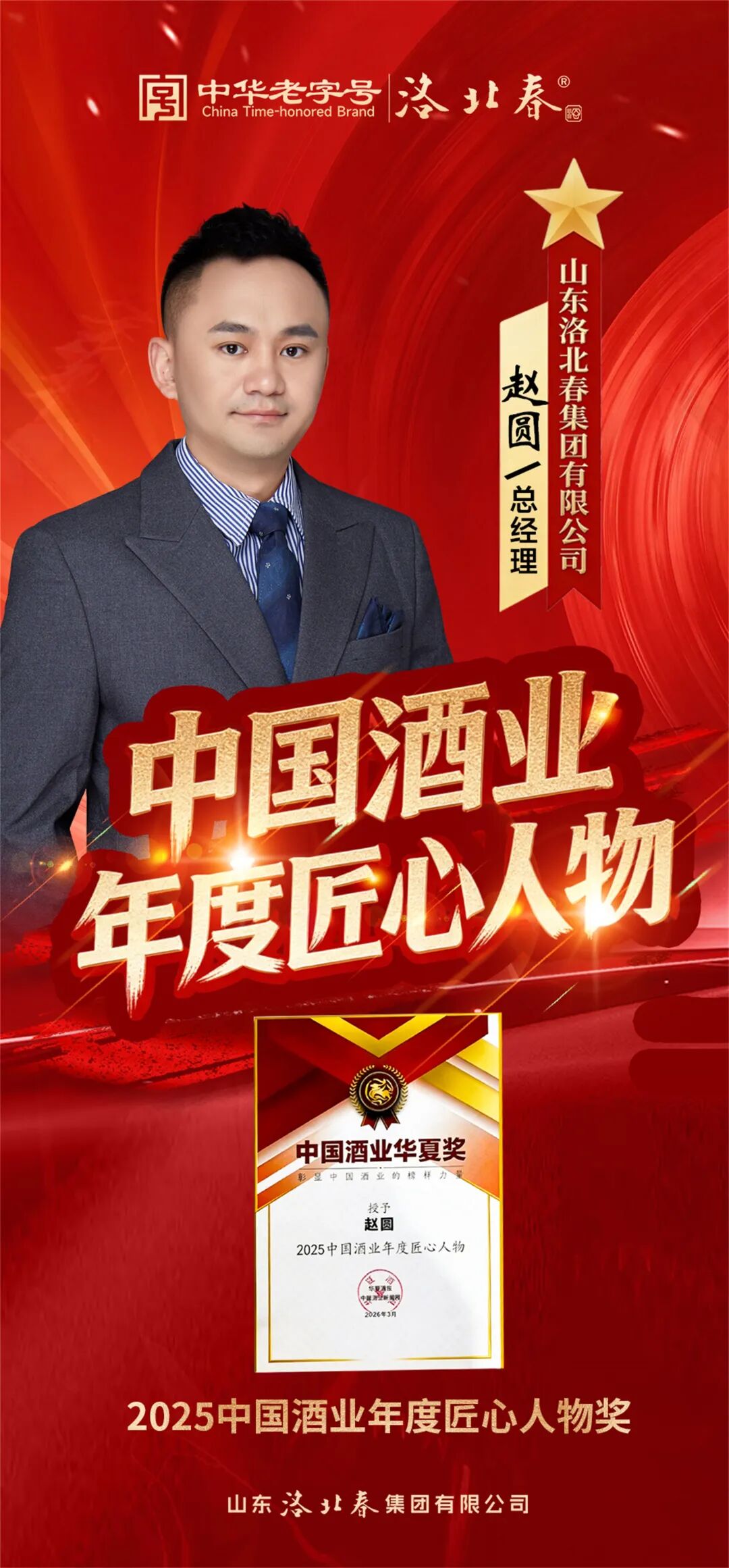 洛北春集团总经理赵圆荣膺「中国酒业年度匠心人物奖」!