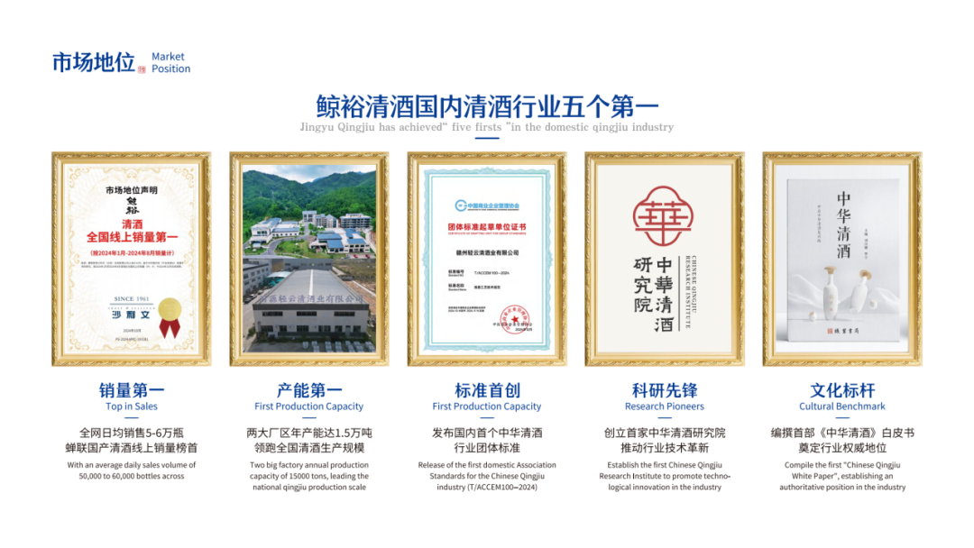 作为中华清酒赛道的标杆品牌,鲸裕清酒始终以“复兴中华清酒”为核心使命。清酒本是中华味,从西周王室专属到汉唐鼎盛,再到酿造技艺东传,三千年底蕴绵长。鲸裕清酒溯本清源,扛起中华清酒复兴大旗,凭借硬核实力斩获行业“五个第一”:全国线上销量第一,全网日均销售5-6万瓶,蝉联国产清酒线上销量榜首;发布国内首个中华清酒行业团体标准,成为标准首创者;创立首家中华清酒研究院,成为科研先锋;编撰首部《中华清酒》白皮书,奠定文化标杆地位;两大厂区年产能达1.5万吨,实现产能第一。