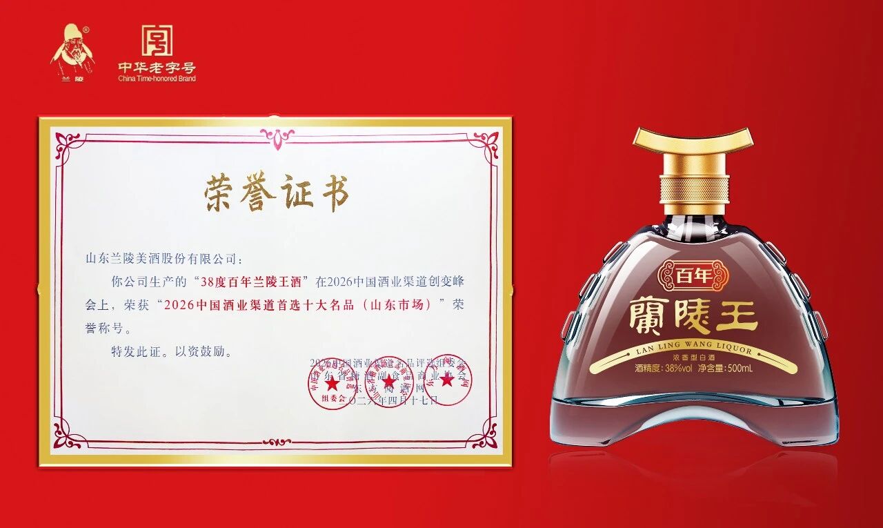 4月17日,由中国酒业协会文化工作委员会指导,山东省糖酒副食品商业协会与东方阅酒网联合主办的“2026中国酒业渠道创变峰会(山东省春季糖酒会专场)”隆重举行。会上正式公布“2026中国酒业渠道首选十大名品(山东市场)”榜单,兰陵美酒38度百年兰陵王酒凭借稳定的产品品质、广泛的市场认可度与强大的渠道竞争力成功入选,再获行业权威认可。