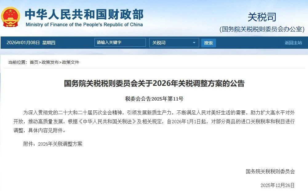 近日,国务院关税税则委员会发布的《2026年关税调整方案》显示,2026年,我国将对935项商品实施低于最惠国税率的进口暂定税率,部分产品的税率显著下调。
