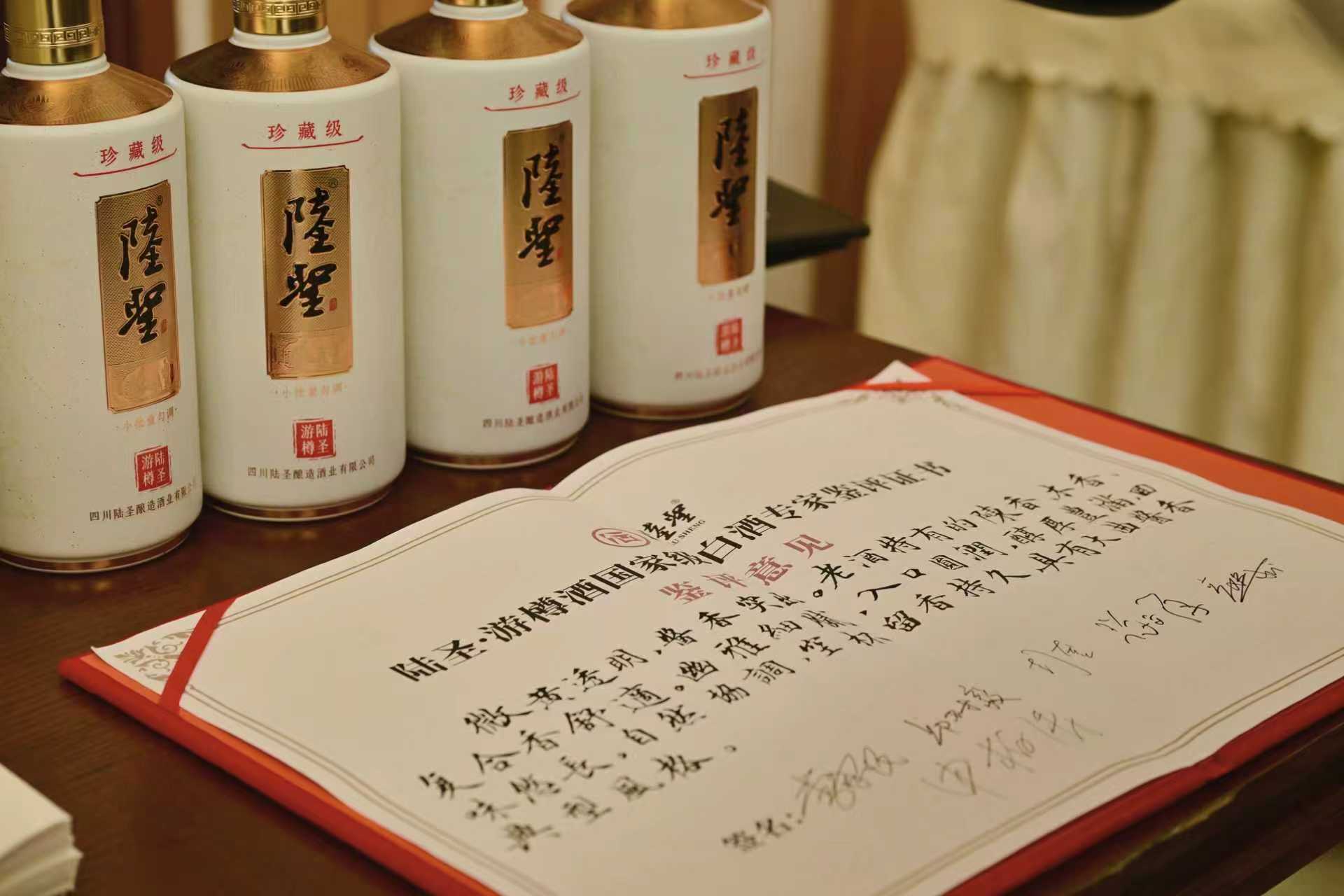 品鉴会现场,空气中弥漫着醇厚馥郁的酱香。作为陆圣酒业集团的扛鼎之作,“陆圣·游樽岁月30年老酱酒”的亮相,无疑成为了全场的焦点。这款酒甄选30年珍稀老酒,由国家级酿酒大师李家民领衔行业知名白酒专家邱树毅、张文学、赵金松、申柏涛,彭奎对陆圣·游樽岁月30年老酱酒专家评品,给出了“微黄透明,酱香突出。老酒特有的陈香、木香、复合香舒适。幽雅细腻,入口圆润,醇厚丰满,回味悠长,自然协调,空杯留香持久,具有大曲酱香典型风格”的品鉴评语。