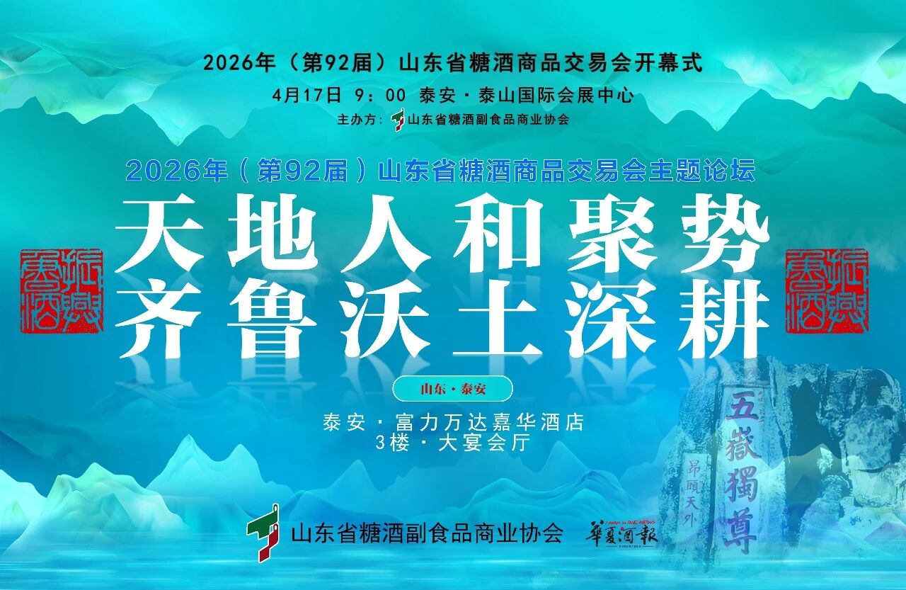4月16日下午2点,以“天地人和聚势,齐鲁沃土深耕”为主题的2026年(第92届)山东省糖酒商品交易会主题论坛,将在泰安·富力万达嘉华酒店·3楼大宴会厅隆重举办,这场论坛也将成为鲁酒企业交流思想、凝聚共识的重要平台。