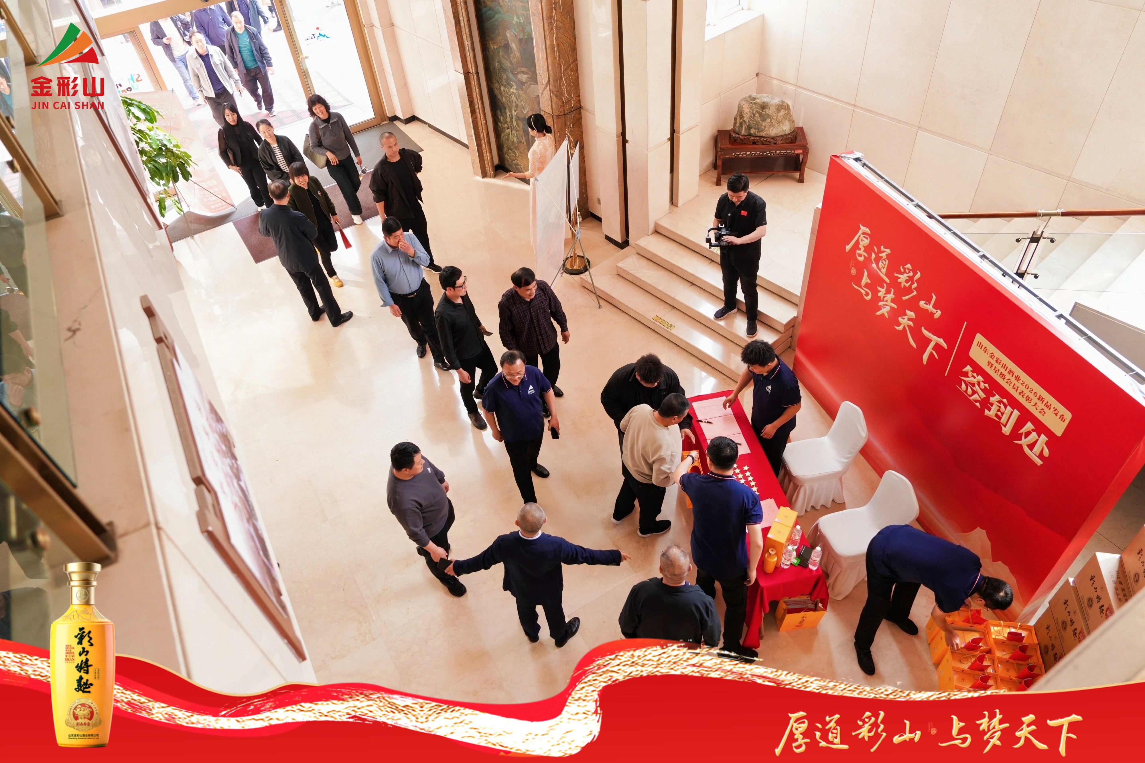 山东省糖酒副食品商业协会会长薛剑锐、泰安市市政府原秘书长张平、协会顾问委员会主任邱振新、副会长张民、金彩山集团董事长孟现波、金彩山集团总经理徐伟、金彩山酒业总经理孟恺文等领导嘉宾莅临现场,与数百位核心合作伙伴、行业精英及主流媒体代表齐聚一堂,共鉴彩山赤金臻品风采,共话品牌发展新篇,共绘高端白酒发展蓝图。